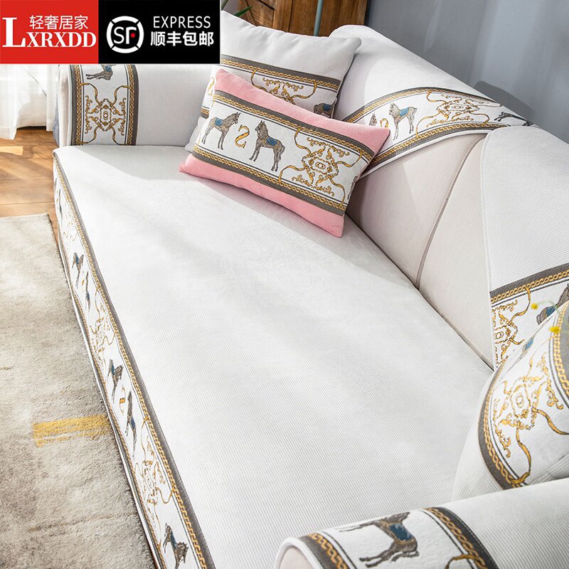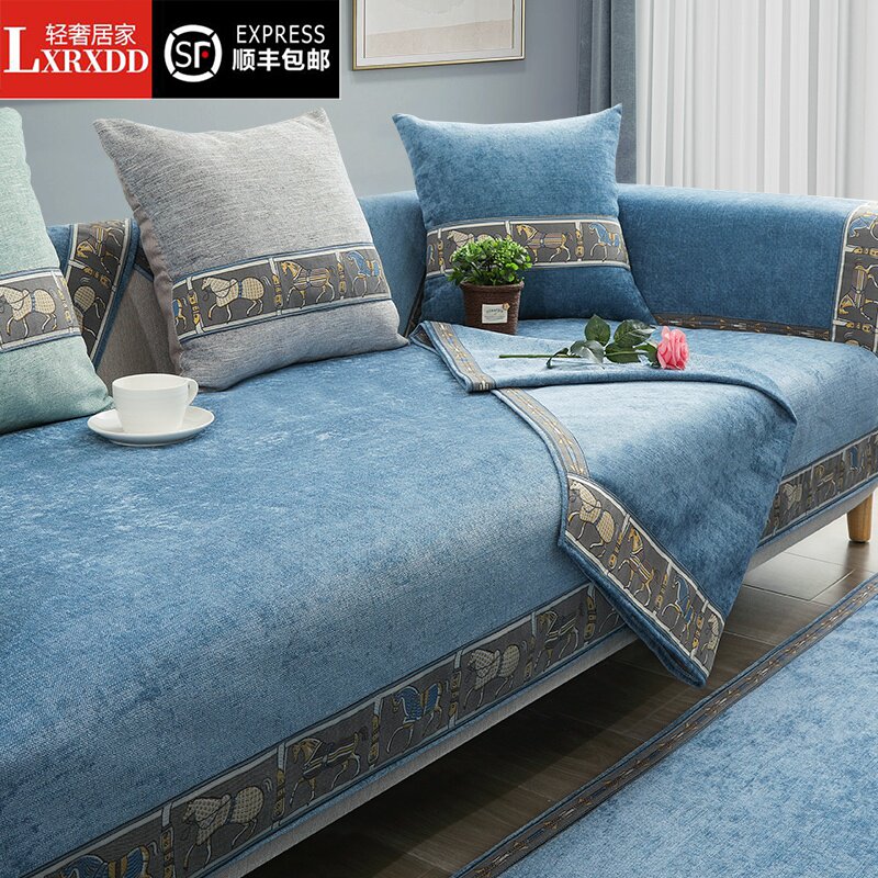 LXRXDD horse to success chenille solid color sofa cushion four seasons universal modern wind non-slip cushion sofa cover