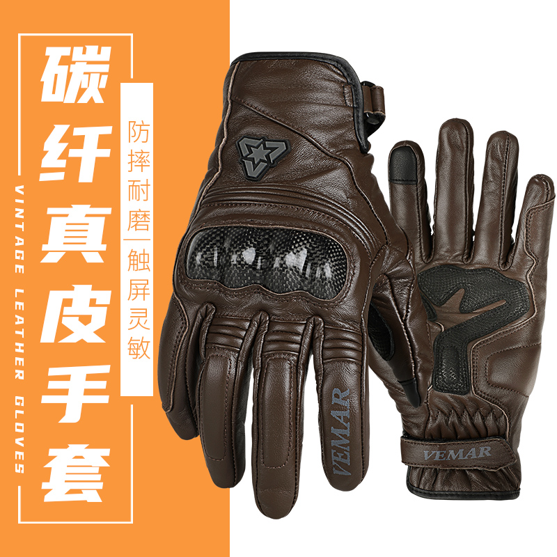 Retro motorcycle carbon fiber leather gloves motorcycle riding racing anti-fall touch screen knight protective equipment four seasons
