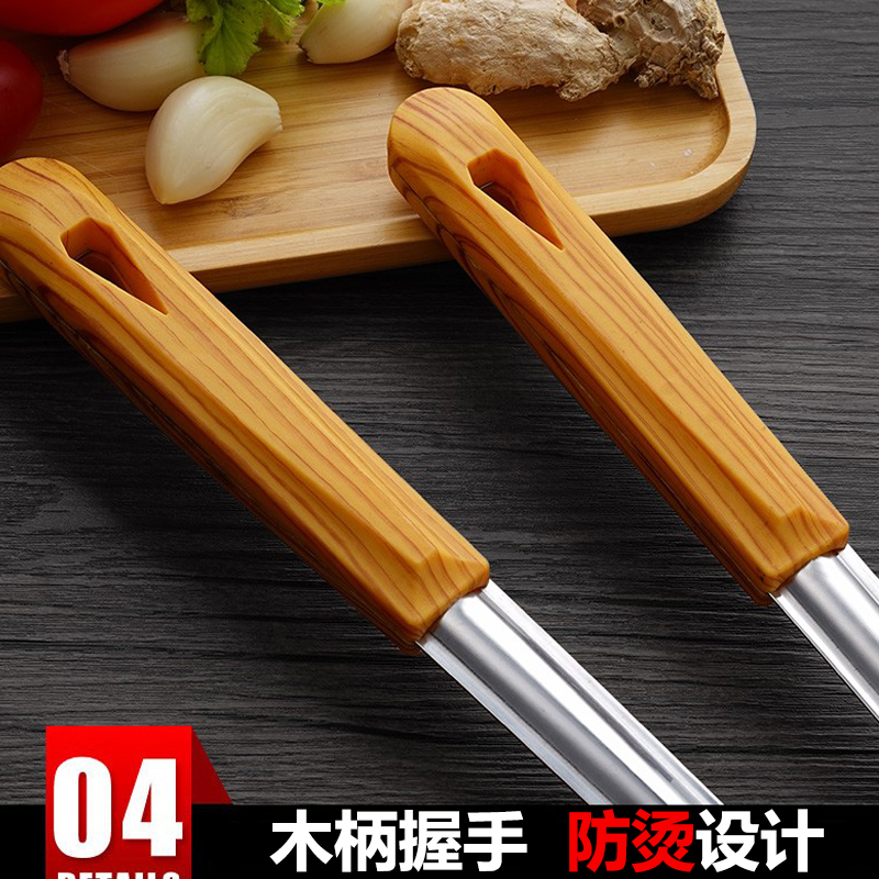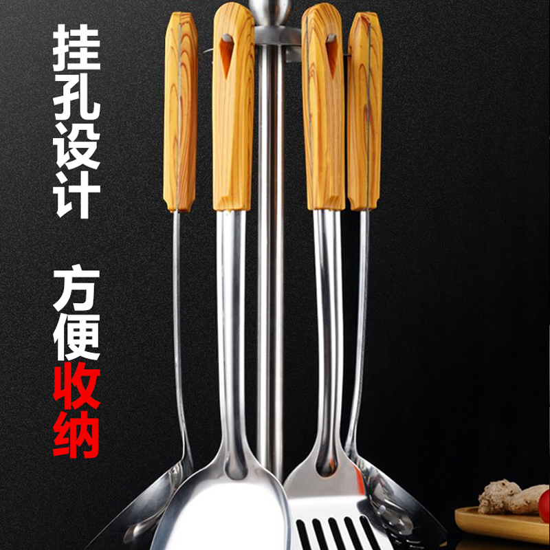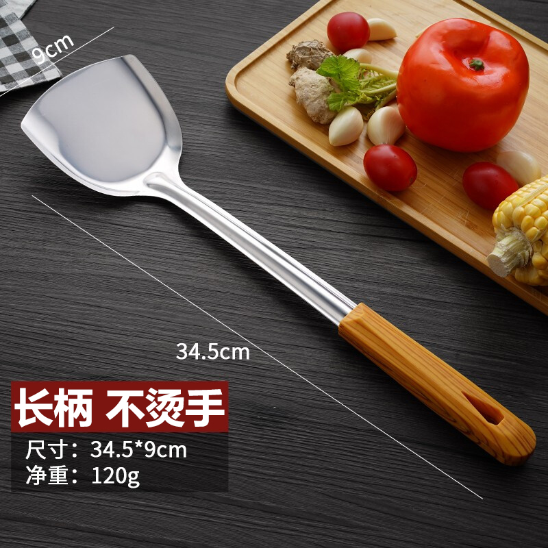 Anti-scalding wood handle Stainless Steel Pan Shovel Soup Spoons for Frying Vegetable Shovels Kitchenware Sets Kitchenette Without Pan for Home Frying Spoon