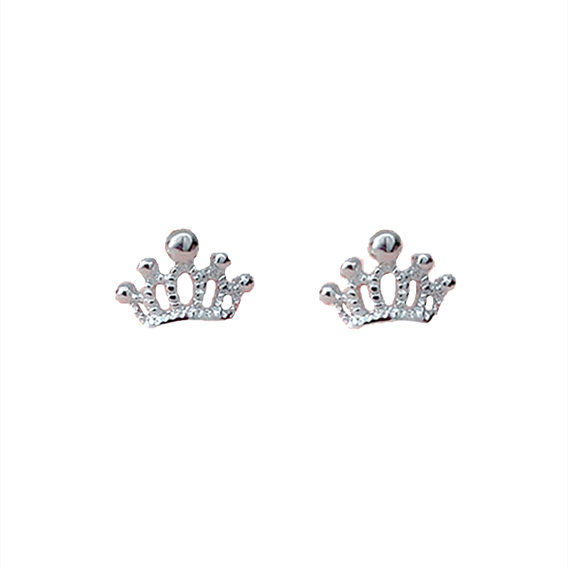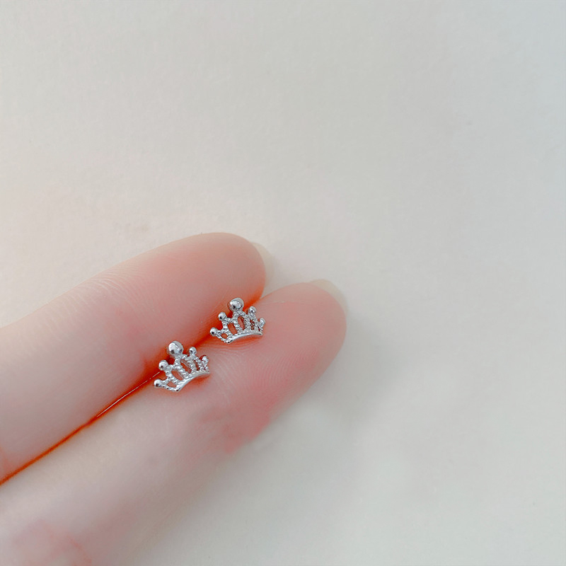 Crown earrings female sterling silver simple temperament personality student s925 sterling silver earrings raising ear piercing earrings female cold style