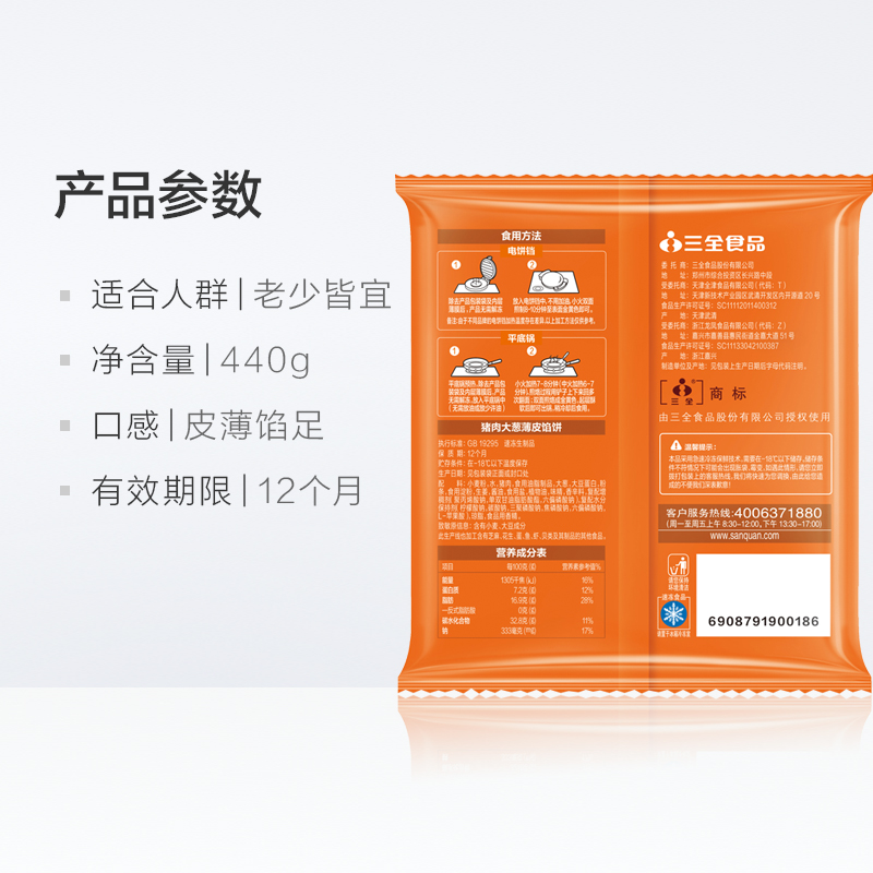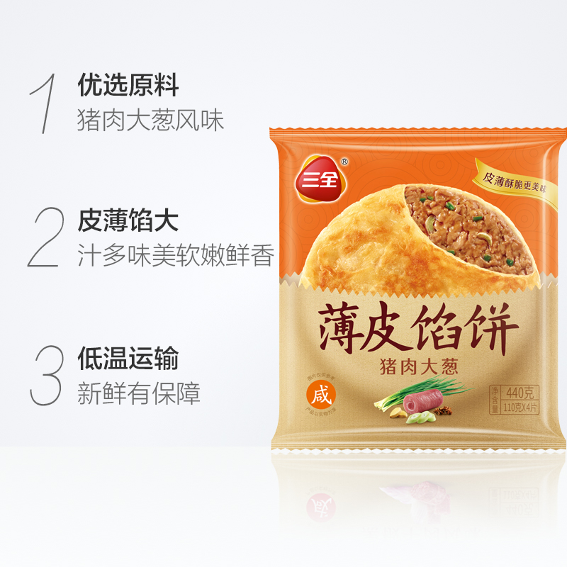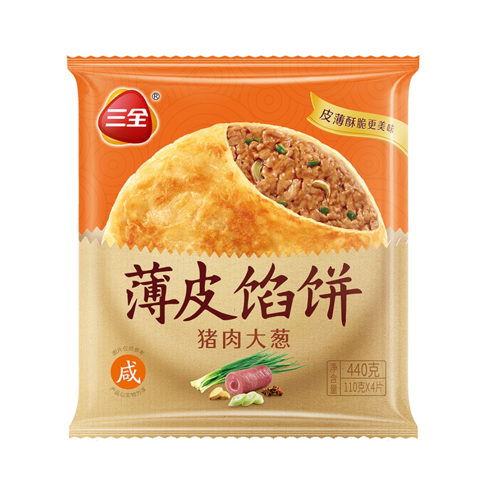 Three whole pork scallion pie (4 packs) 440g bag family breakfast delicious supper pork cake $