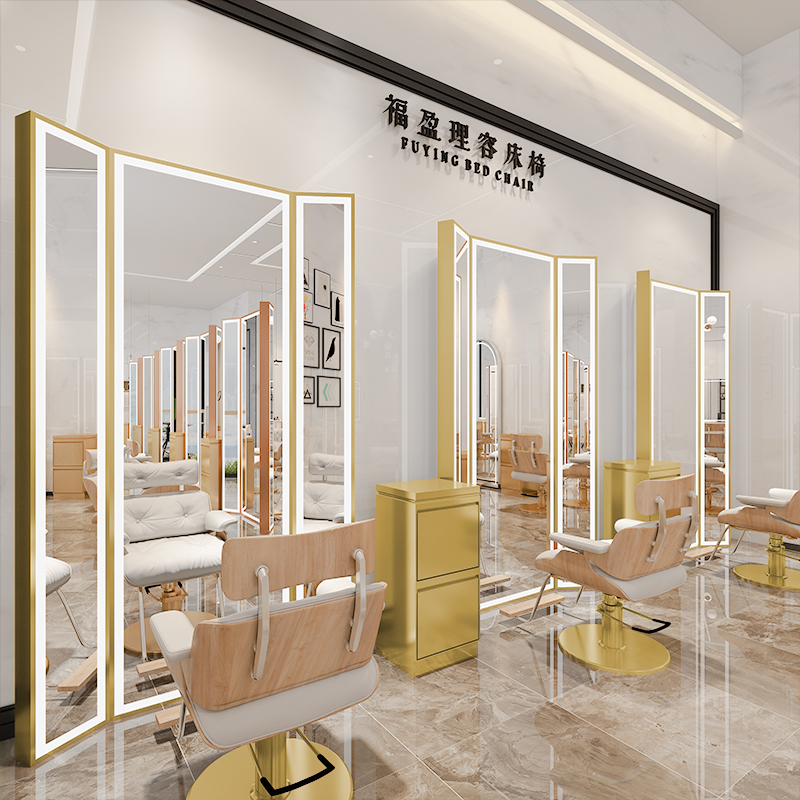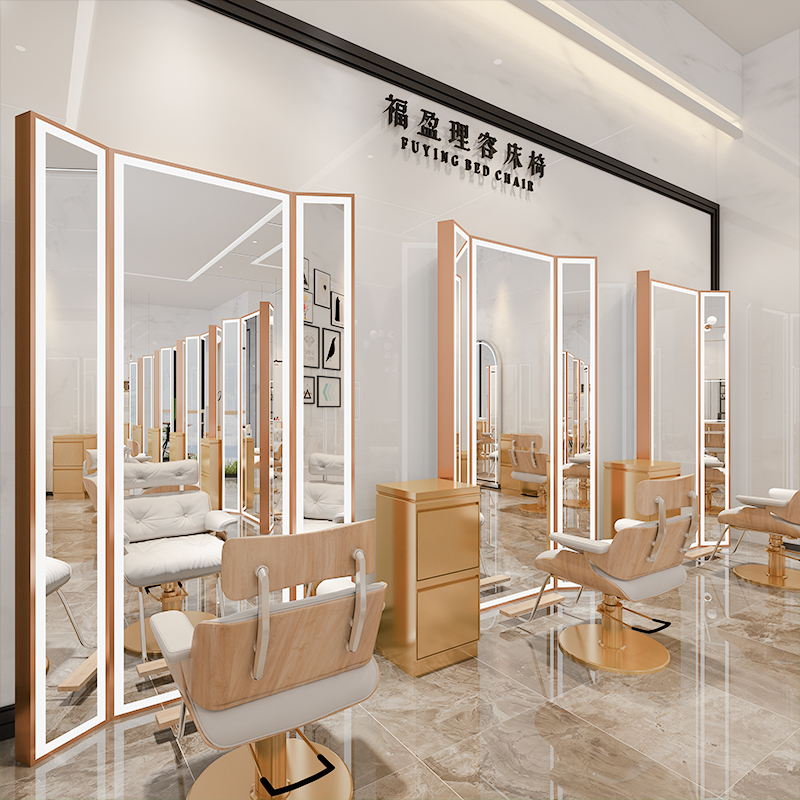 Net Red Tape Shop Mirror Table Beauty Hair Shop Mirror Hair Salon Special Haircut Mirror With Light Floor Tide-Haircut Three-Fold Mirror