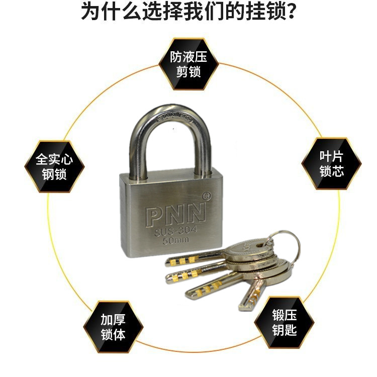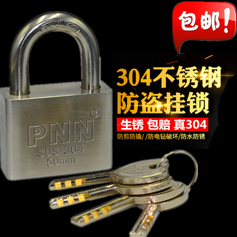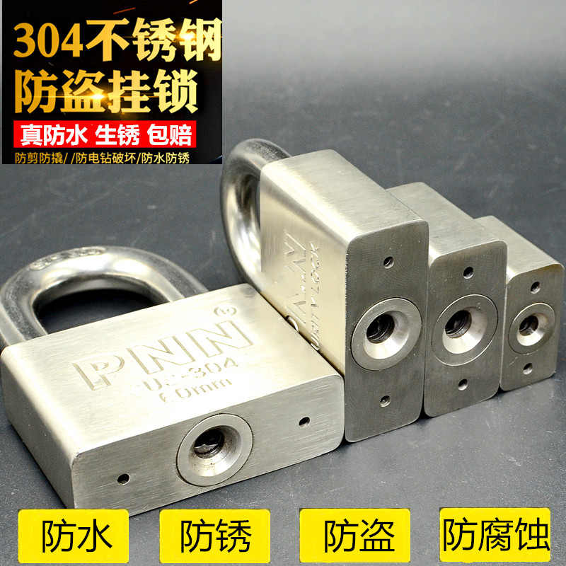 Waterproof anti-rust 304 stainless steel padlock door padlock warehouse door lock outdoor small key lock open padlock burglar alarm