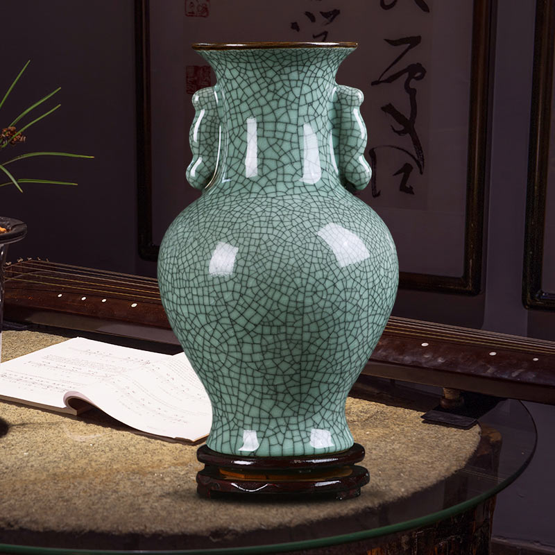Jingdezhen Ceramic Ware Crackling Glaze Vase Antique official Kiln Floral Wine Cabinet Home Residence Decoration Craft Gift Hem of Chinese Hem