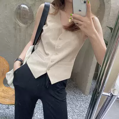 Little La 1937V collar card its vest vest vest women's suit padded personality simple jacket sleeveless suit