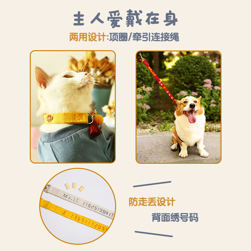 Honey handmade diy dog pet collar cat collar custom pet traction rope embroidery material package