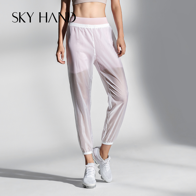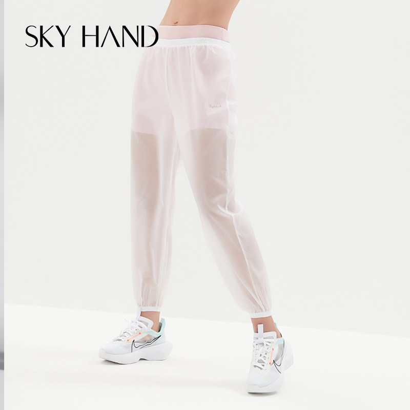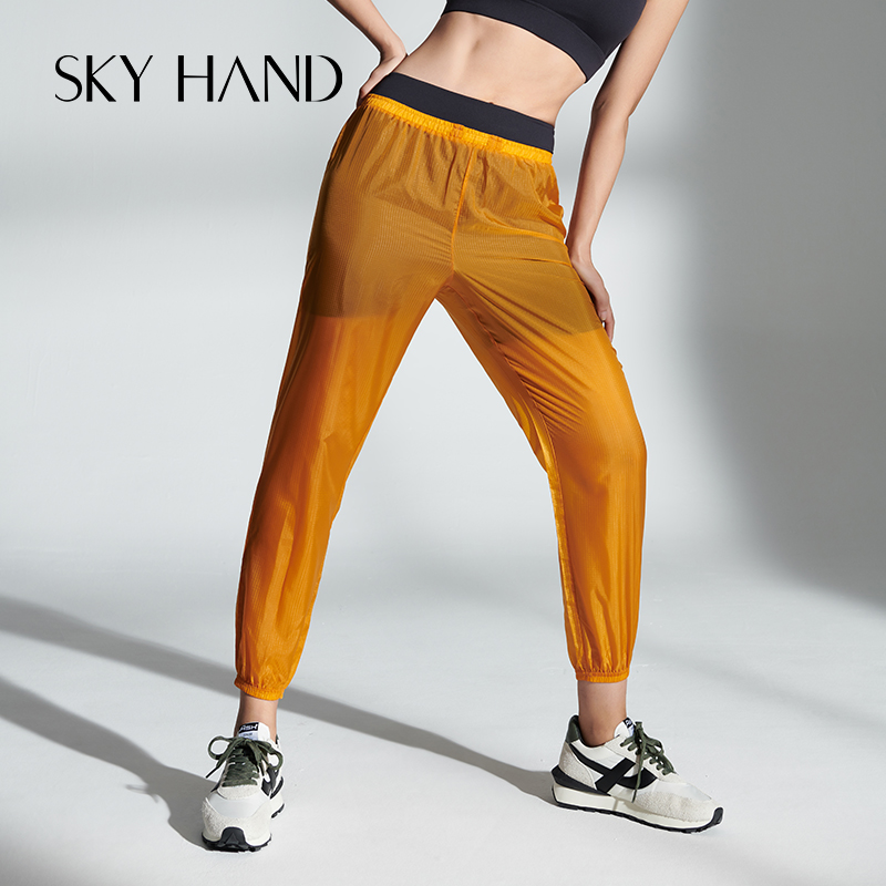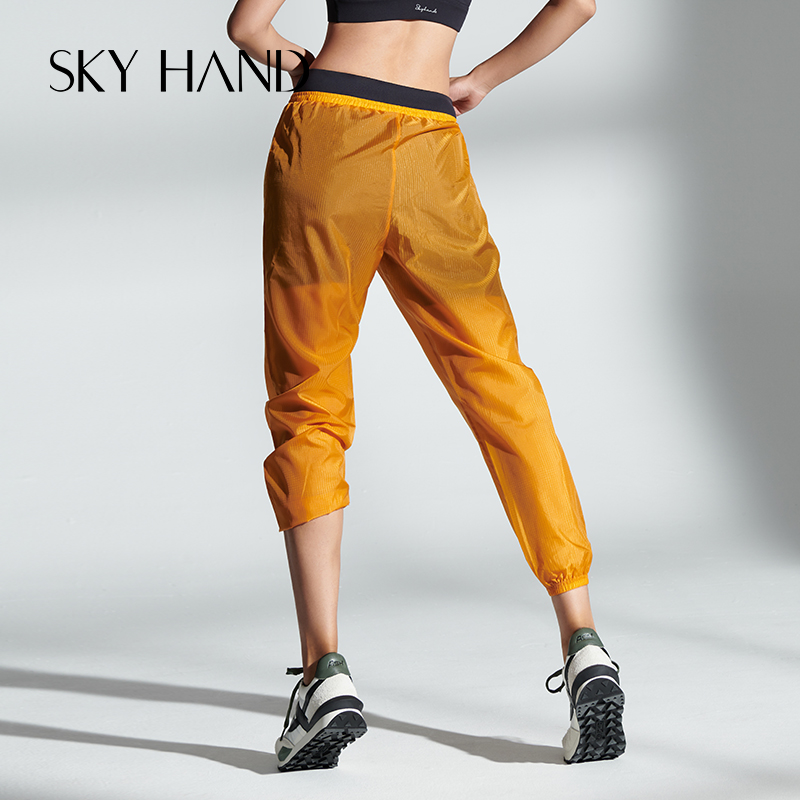 SKYHAND quick-drying pants women cool thin fake two translucent sports pants running training loose and breathable