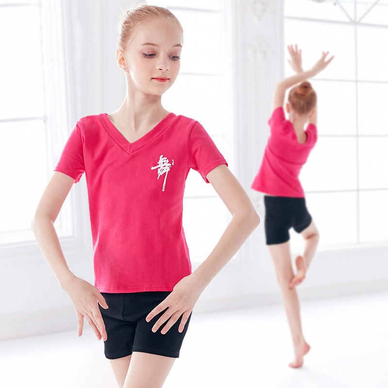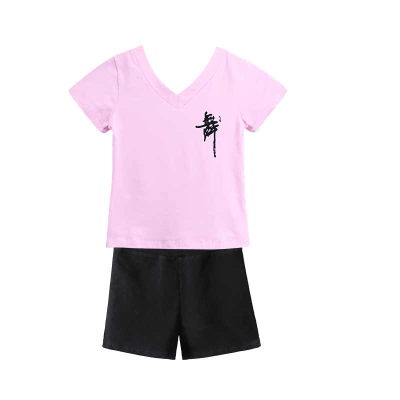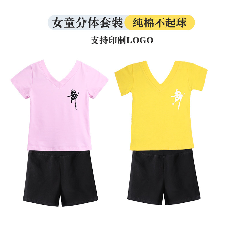 Children's dance clothes practice short-sleeved shorts suit national Chinese dance boys and girls v-neck two-piece gym suit - Taobao