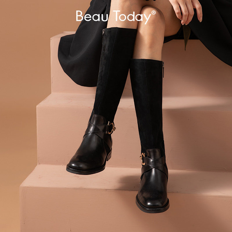 BeauToday New Retro Boots in autumn and winter with coarse black boots BT