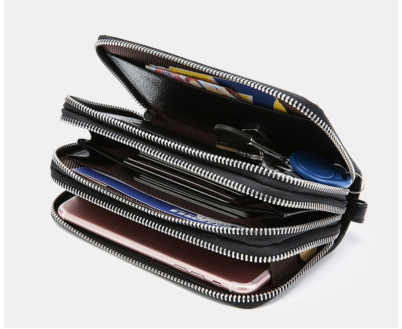 Kraft handset package three zipper large capacity key card bit wallet real leather multifunction classification to incorporate general purpose for men and women