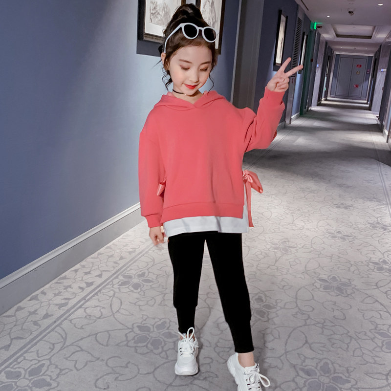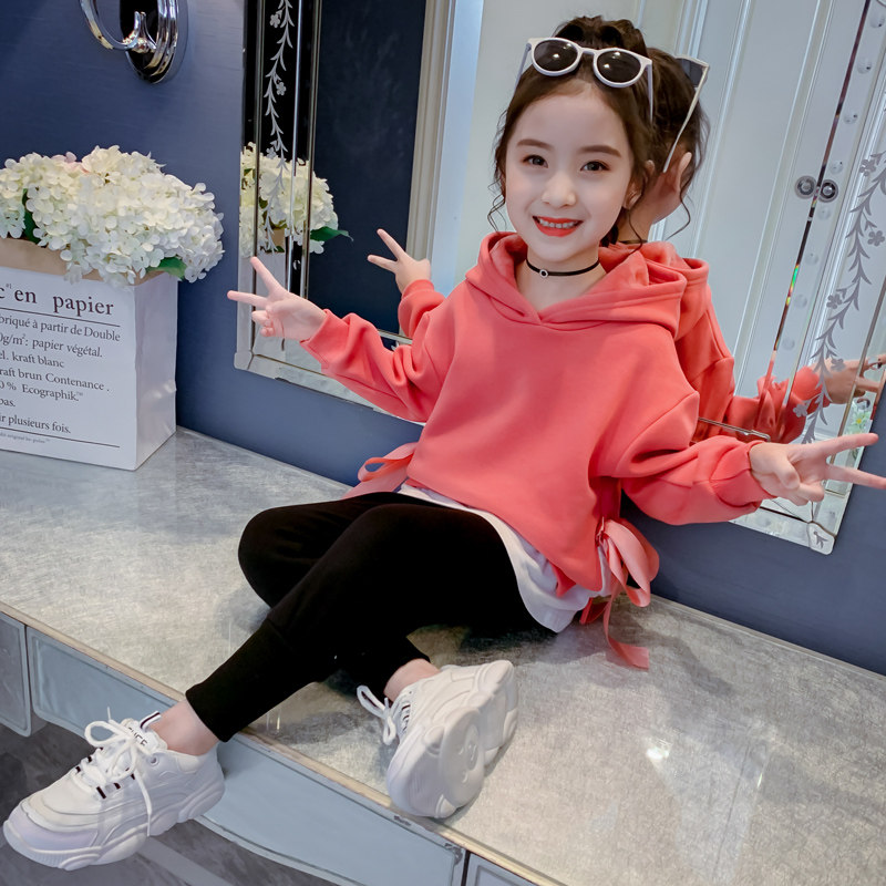 Girls thick T-shirt autumn clothes 2021 new children Spring and Autumn foreign style hooded top Children girls foreign style tide