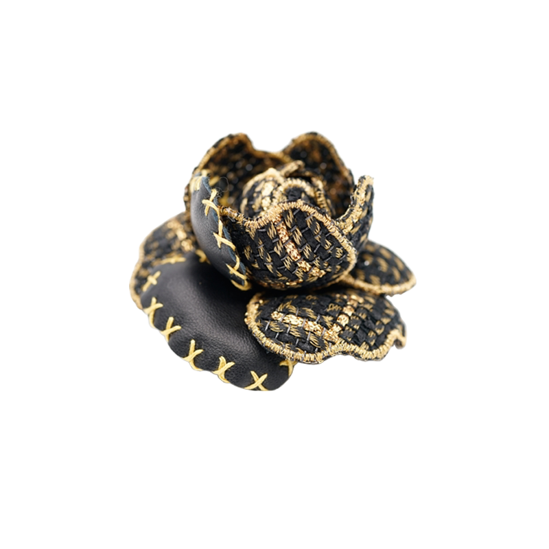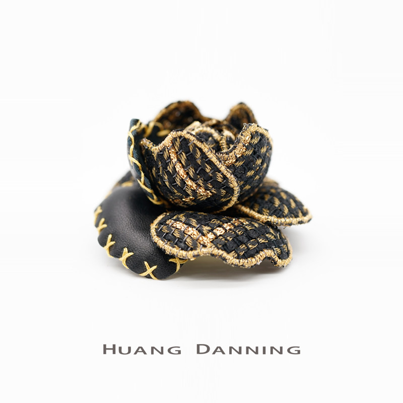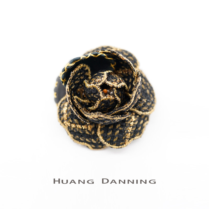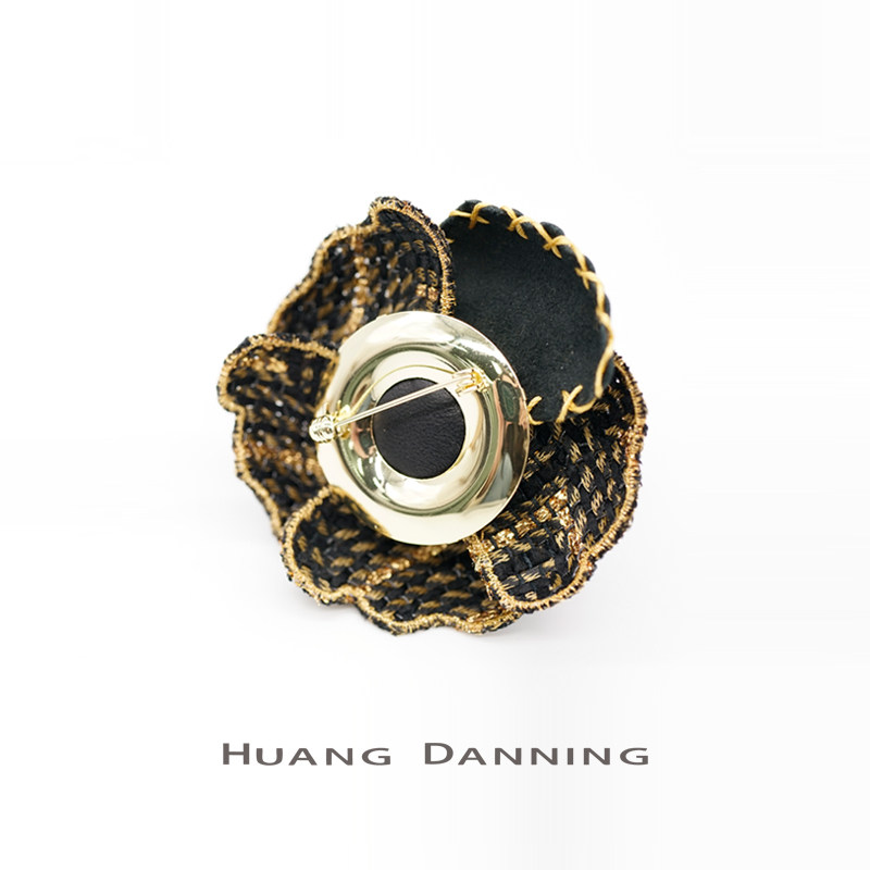 THE HUANG DANNING FRENCH Imported small fragrant wind black gold coarse cloth sheepskin tea flower brooch chest and chest flower