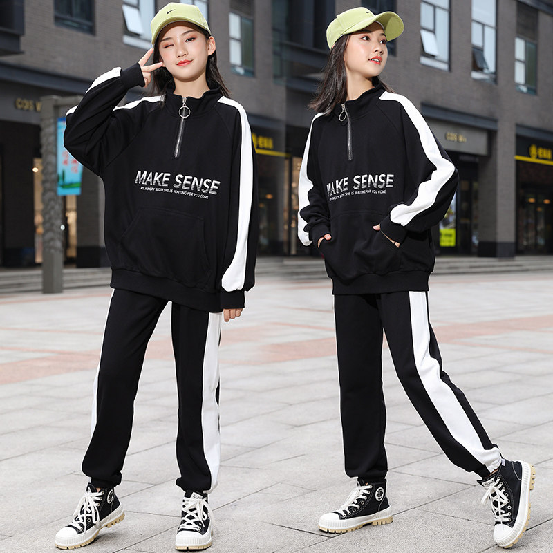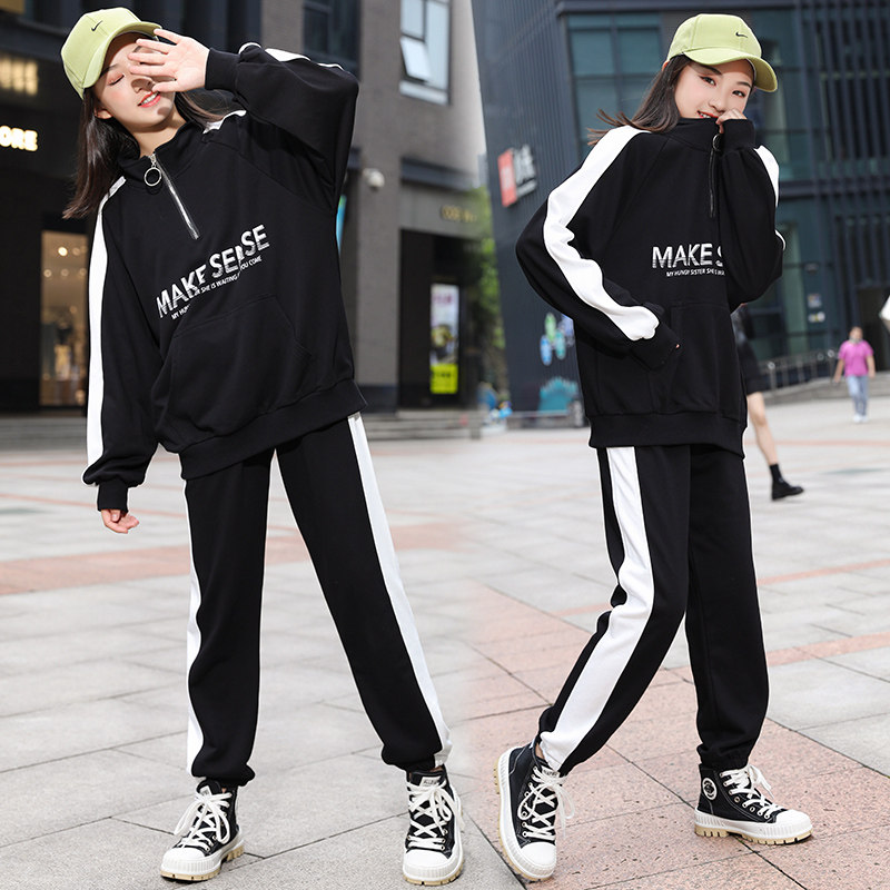 Girl's thick T-shirt suit 2022 Spring loaded with new 12 Grand Scouts girls Yanist sport 15-year-old leisure Two-style 13