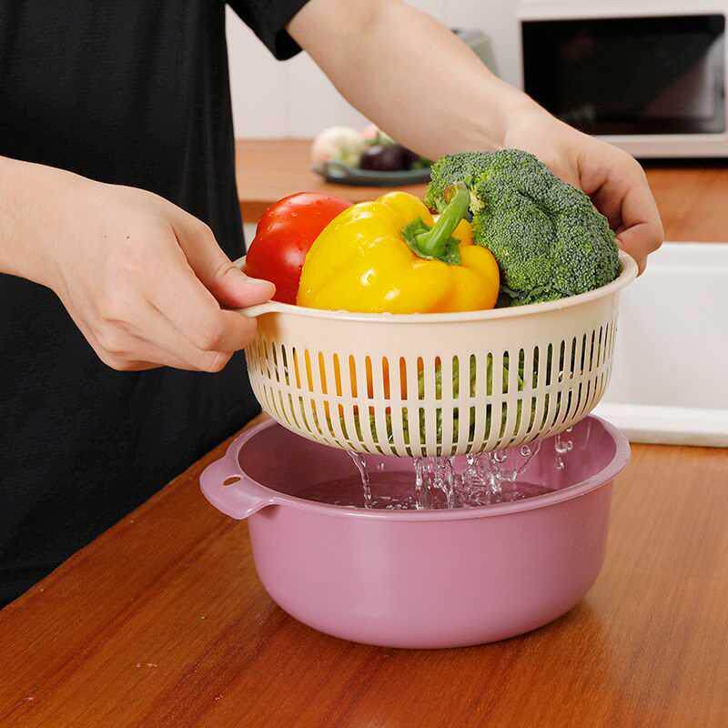 Double-layer plastic washing basin drain basket Household kitchen amoy basket Large creative washing basket living room fruit plate