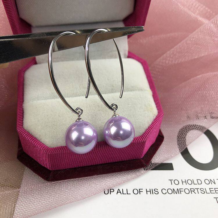 Silver minimalist medium long version white beaded earrings silver minimalist medium long version purple beaded earrings silver minimalist medium long version peacock green bay pearl earrings silver minimalist mid-length version Violet beaded earrings silver minimalist mid-length