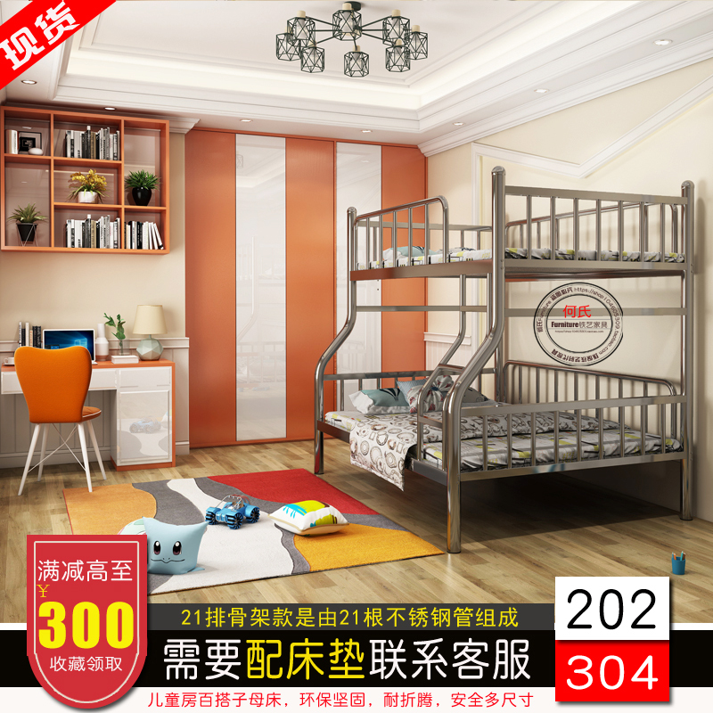 304 stainless steel bunk bed high and low mother bed iron frame bed thick household adult 1 8 m double bed