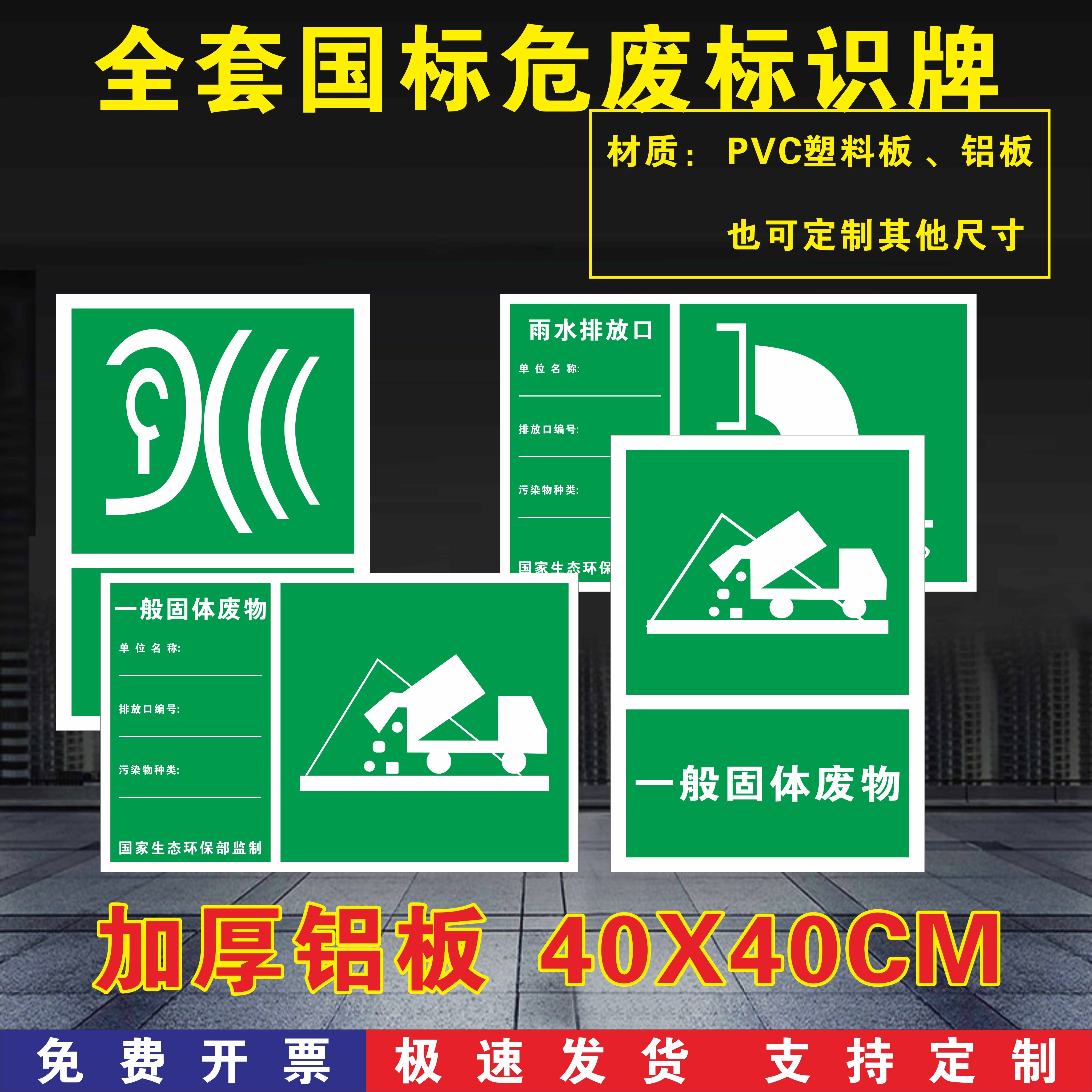 01 EXHAUST PORT ALUMINUM PLATE 02 RAIN WATER DISCHARGE ALUMINUM PLATE 03 GENERAL SOLID WASTE ALUMINUM PLATE 04 NOISE EMISSION SOURCE ALUMINUM PLATE 05 SEWAGE DISCHARGE ALUMINUM PLATE 06 HAZARDOUS WASTE STORAGE YARD