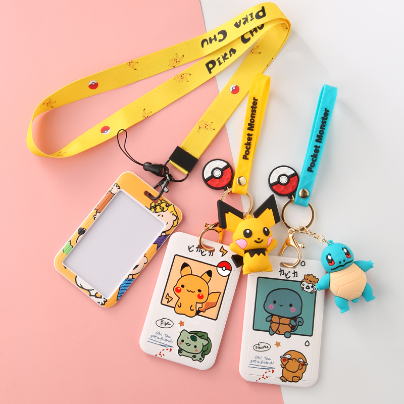 Shy Pikachu Card Holder Hanging Buckle Jenny Turtle Card Holder Hanging Buckle Playful Pikachu Card Holder Hanging Buckle Charizard Holder Hanging Buckle Shy Pikachu Card Holder Yellow Braided Rope Jenny Turtle Holder Yellow