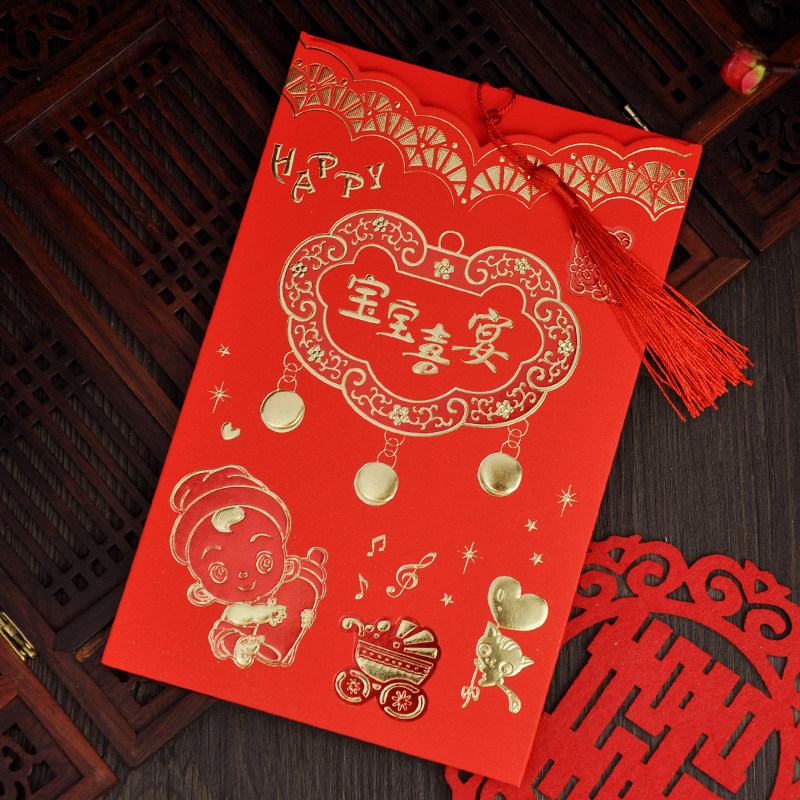 Full Moon Wine Invitation Baby 100-Day Feast Wedding Post First Birthday Invitation Birthday Banquet Personality Creative Mizuki No Joy Cut Braid