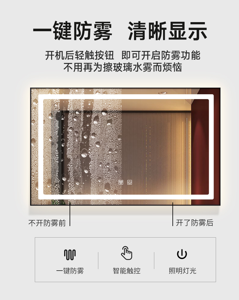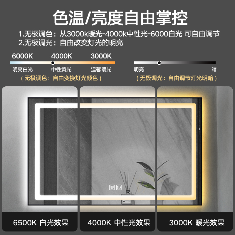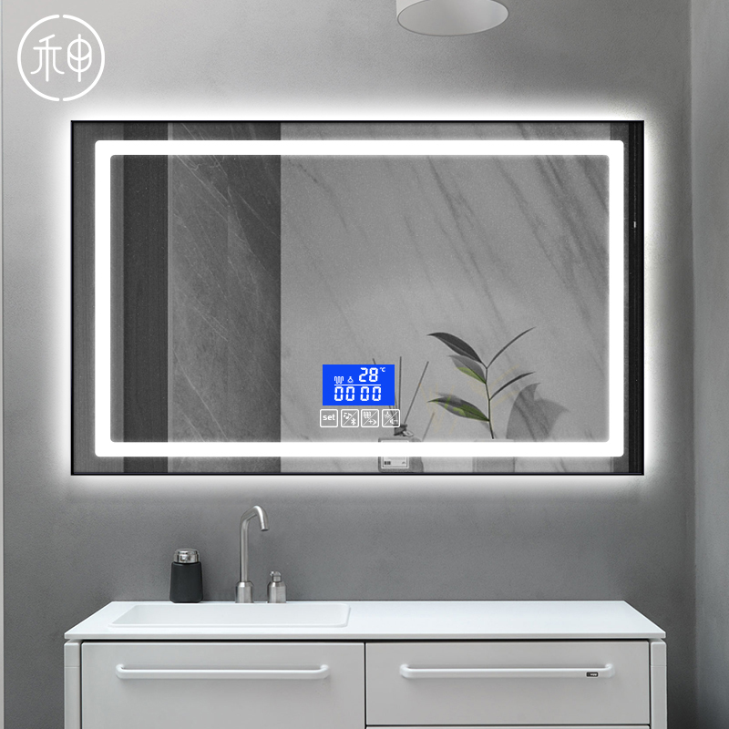 Smart mirror wall-mounted aluminum alloy frame bathroom mirror LED light mirror cosmetic room touch anti-fog mirror toilet with light mirror