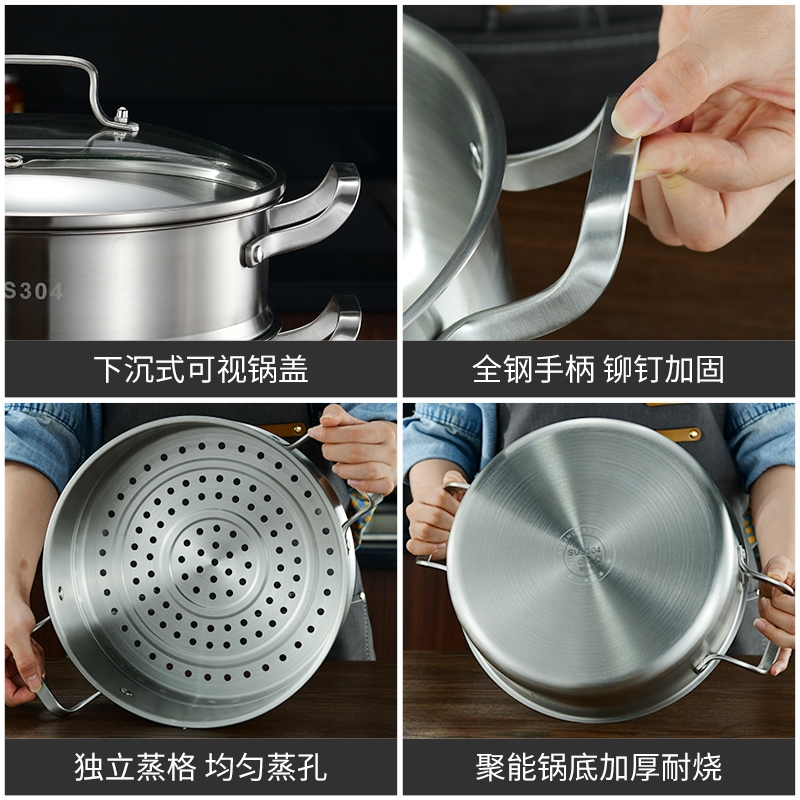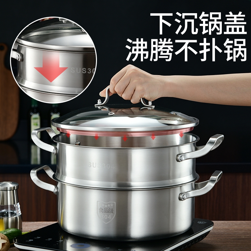 Steam Pot Special Thickness 304 Stainless Steel Home Steam Cage Steamed Buns Big Cooking Hot Pot Four Layers of induction cookers Gas generic