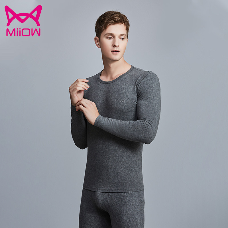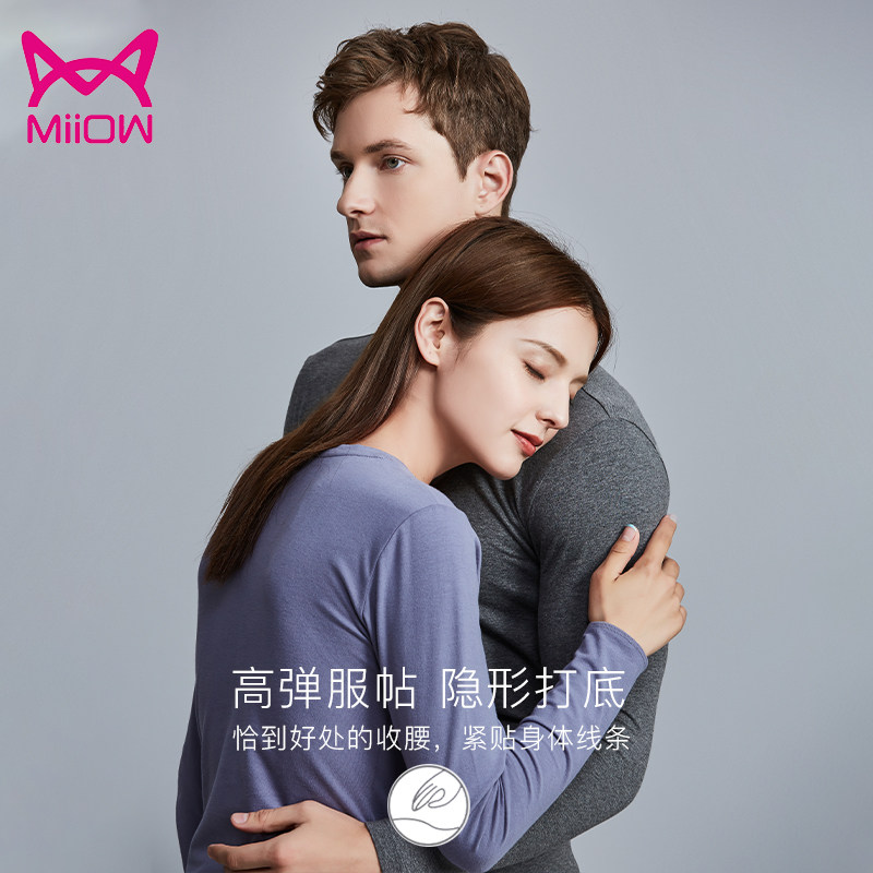 MiiOW cat man Leica pure cotton autumn clothes autumn pants round V collar white elastic body cotton quality autumn clothes
