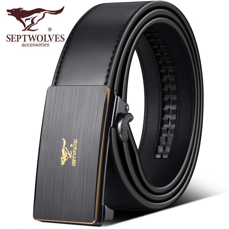 Septwolves belt men's leather automatic buckle smooth buckle inner wear plate buckle young youth pants belt men's belt