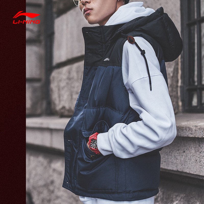 Li Ning Wade life basketball series men's down vest winter stand collar wind jacket warm sportswear