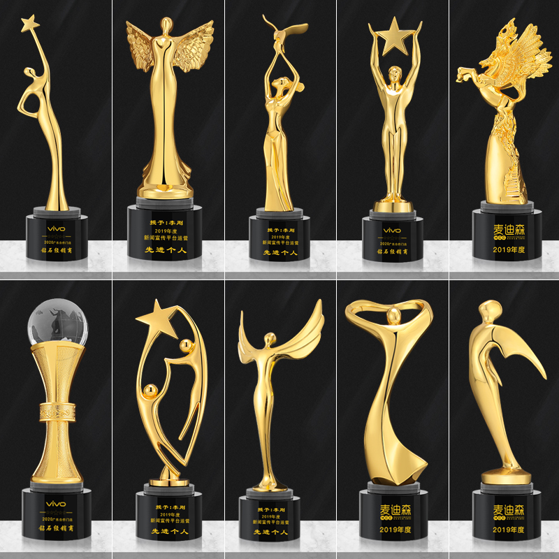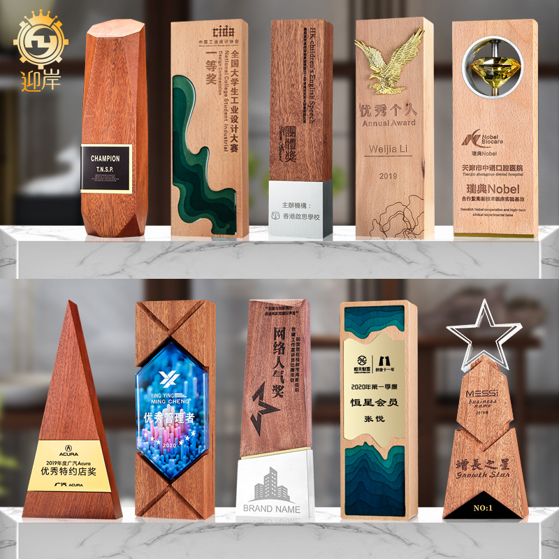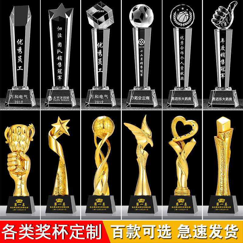 Crystal trophy from 25 yuan Walnut base from 65 yuan Resin trophy from 60 yuan Color printing trophy from 75 yuan Solid wood trophy from 80 yuan Metal trophy from 85 yuan