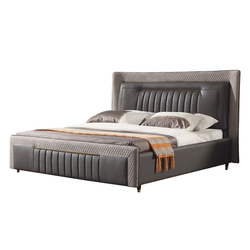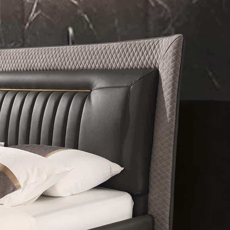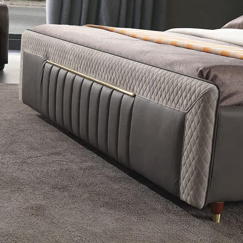 Real leather bed modern simple light luxury double bed Master Bedroom 1 8 meters wedding bed atmospheric luxury gilded soft bed leather bed