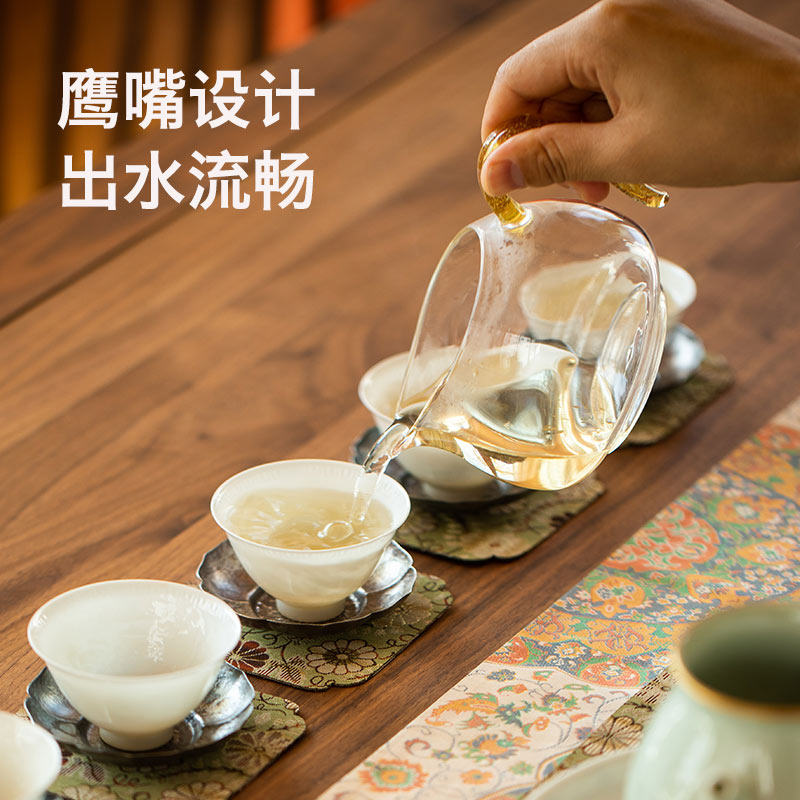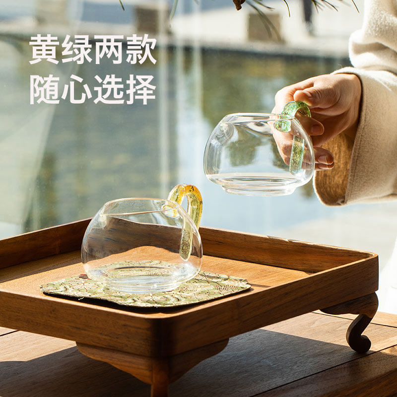 Get Son's Tea Accessories Dwarf handle Glass fair Cup Ceramic Tea Tea Tea Cup Suit No Tea Leakage Great Tea Instrumental
