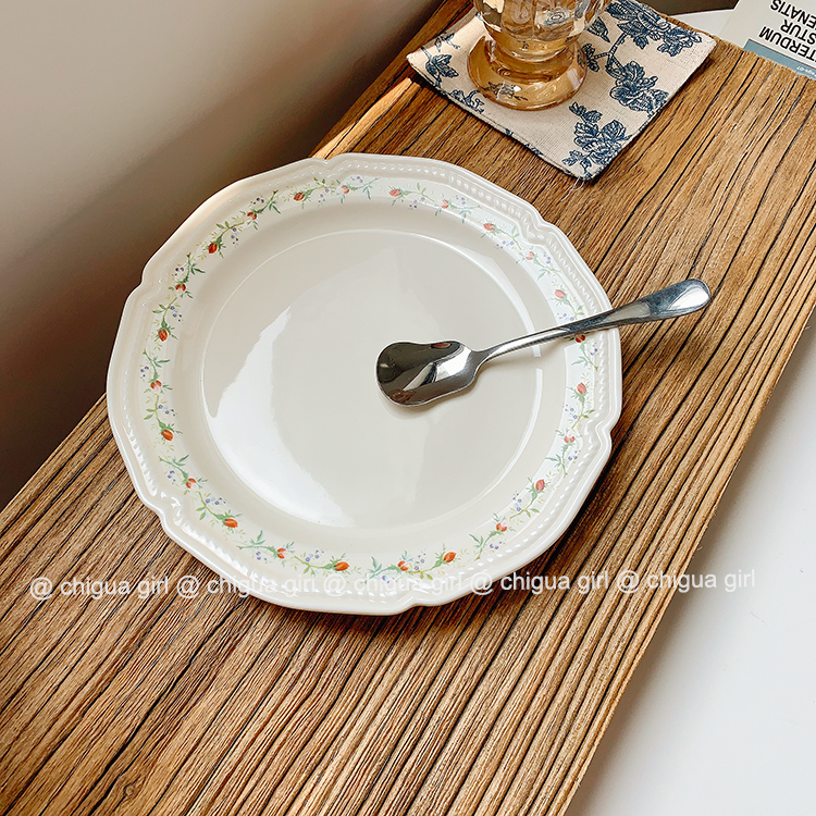 South Korea Ins Cane Flower Style Relief Dinner Plate Saucer Ceramic Dessert Fruit Pan Retro Vintage Cutlery