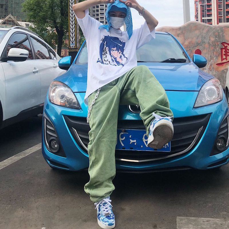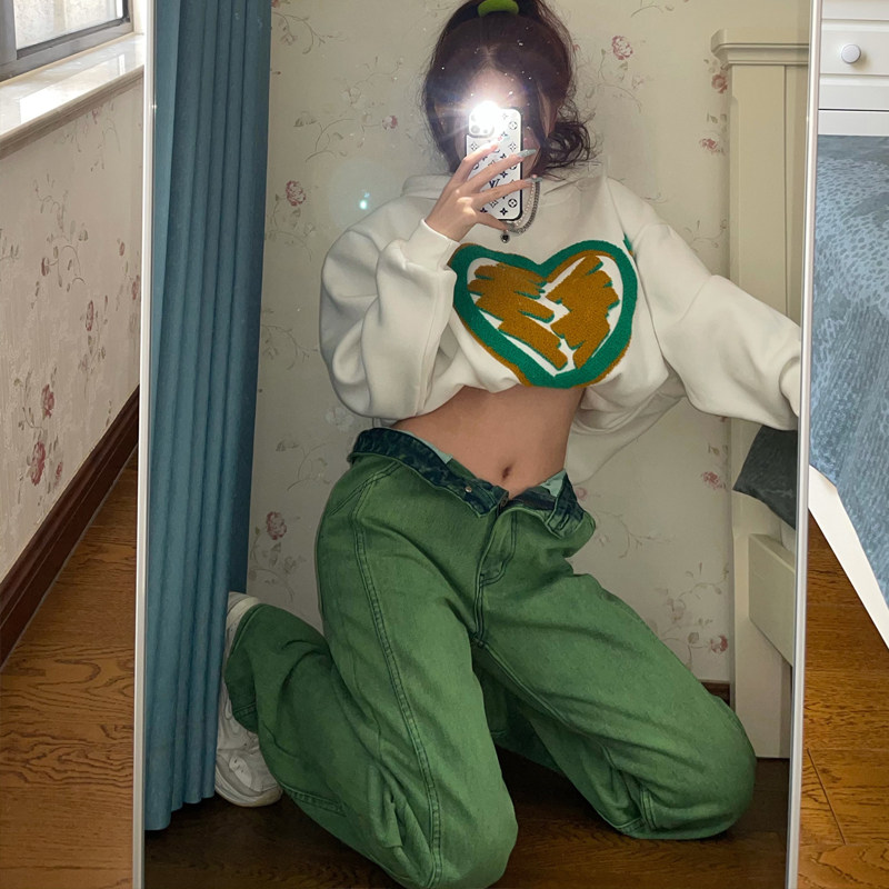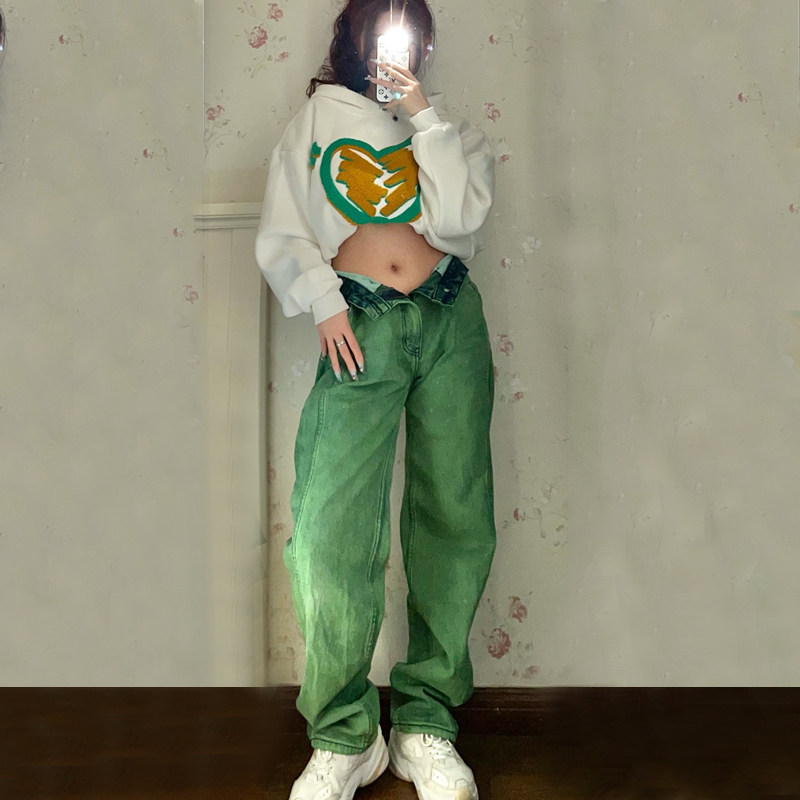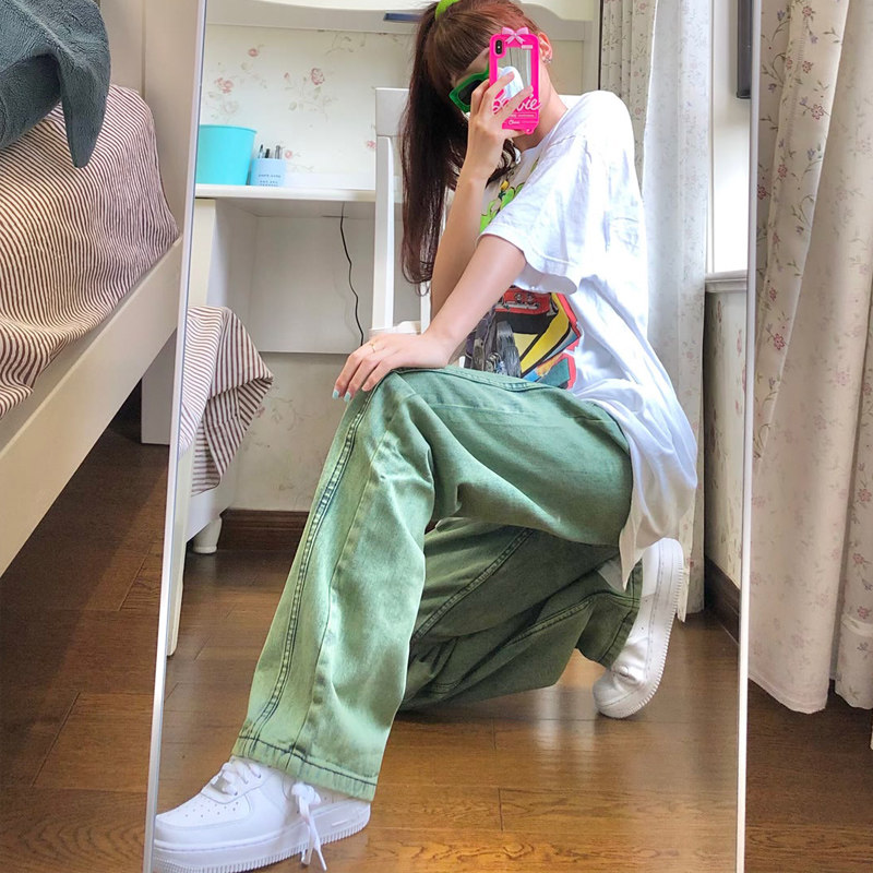 Guochao heavy industry green ek jeans women's thin 2022 new spring hiphop straight high waist loose wide leg pants