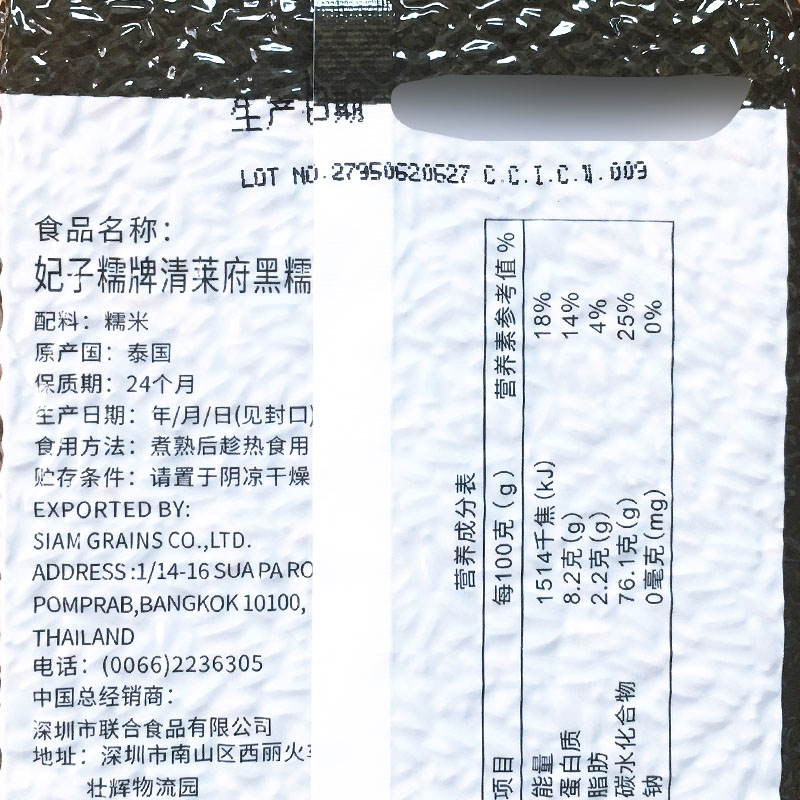 Thai black glutinous rice raw imported courtesino glutinous rice purple blood glutinous rice dumplings rice mixed grain 2 catty of sweet raw material