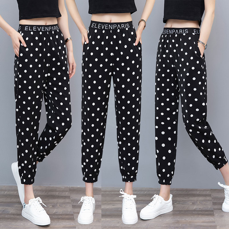 Snow Spinning Wave Dot Kharen Pants Woman Summer High Waist Thin section 2022 New 90% Ice Casual Loose Bundle Feet Lamp Cage Pants