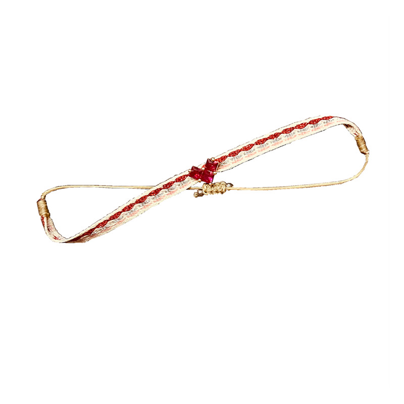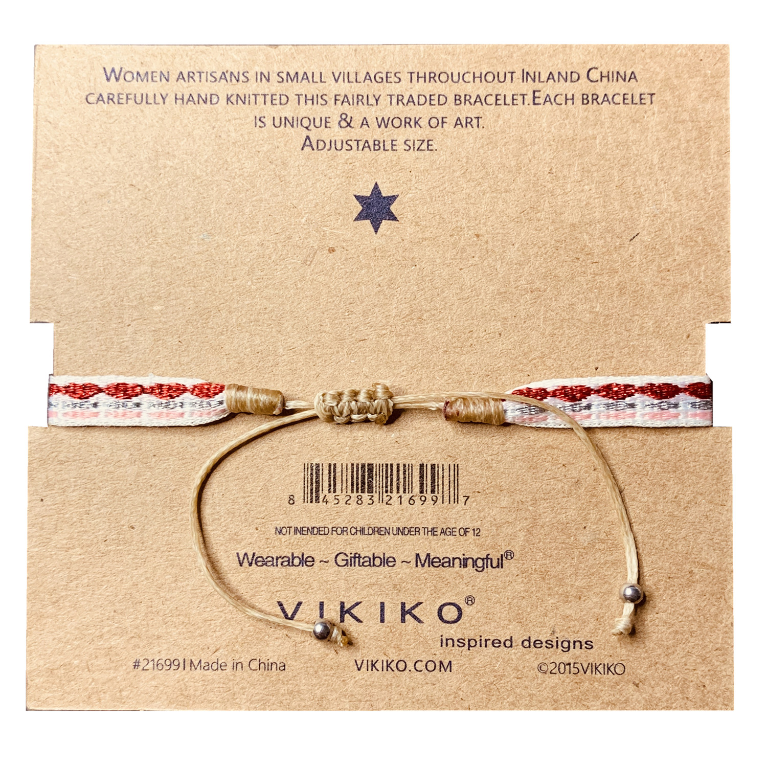 VIKIKO Japanese hand-made cute pure hand-woven girl's hand (inlaid with love red diamonds) pink and gray