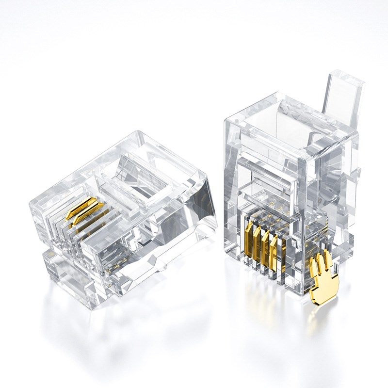 Green Union Phone Crystal Head 2 4 Core telephone landline Machine fax machine rj11 connector 6P2c4c plug-in