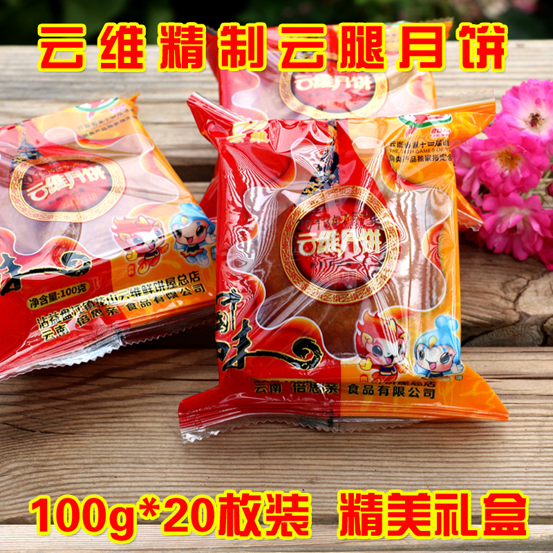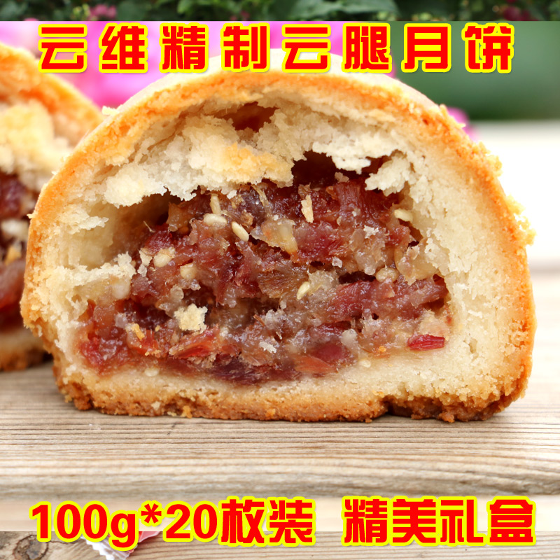 Yunnan specialty Yunwei ham moon cake Xuanwei ham flowers egg yolk pine nuts moon cake small cake for Mid-Autumn Festival gift