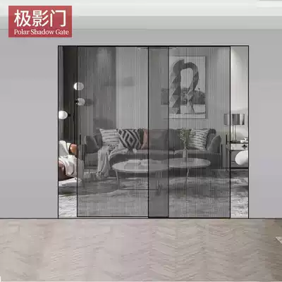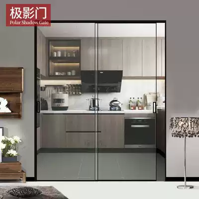 Very narrow and thin frame push-pull kitchen titanium aluminum alloy custom partition balcony living room hanging wheel linkage glass sliding door