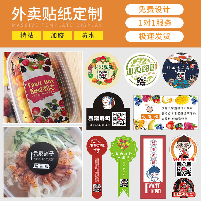 Packing lunch box sticker custom logo takeaway QR code label fast food lunch box sealing sticker logo custom