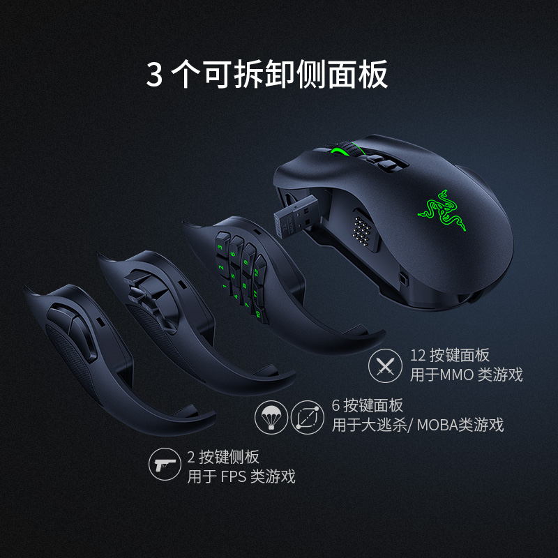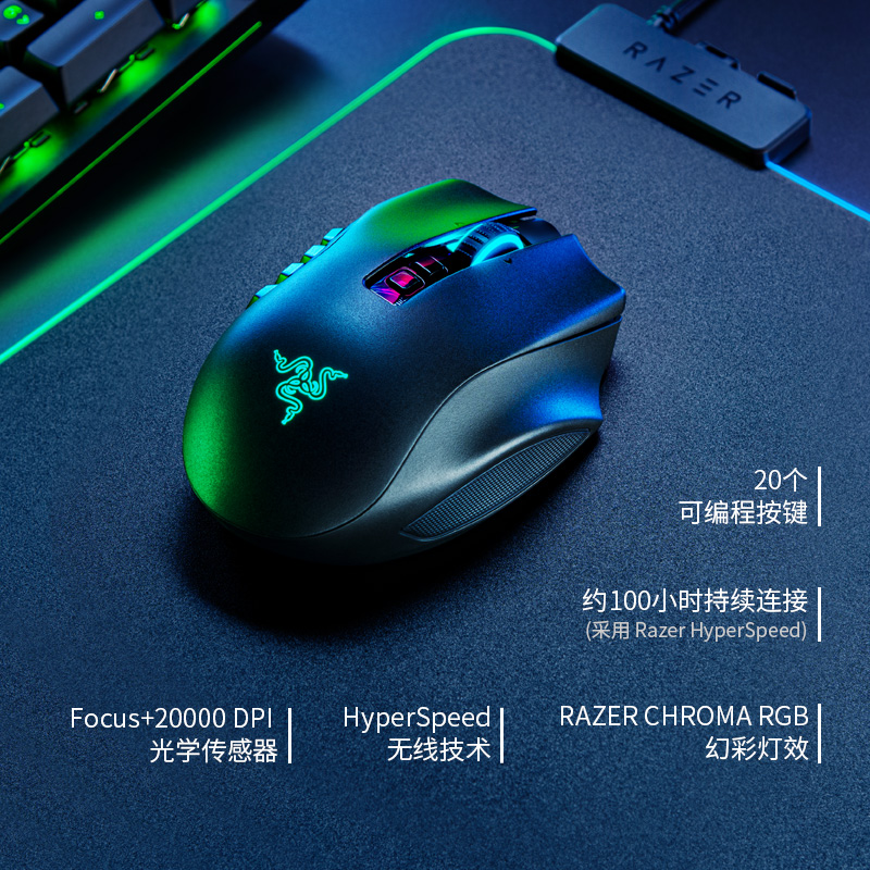 Razer Thunder Snake Nagar Van Snake Pro professional version NAGA Wireless Bluetooth electric race game slip mouse Macro Exchangeable Side Key
