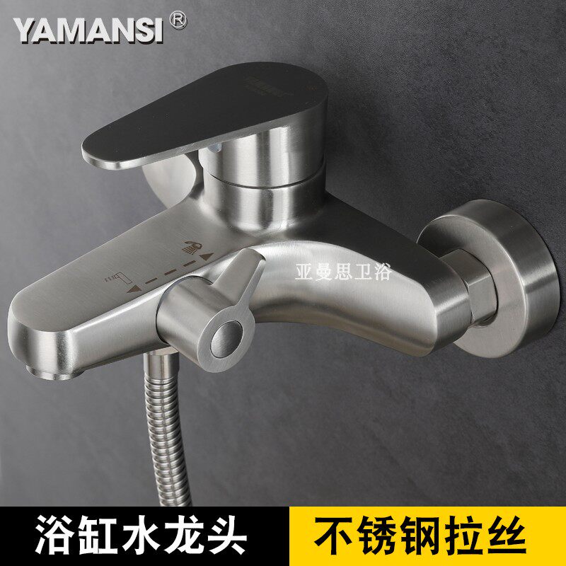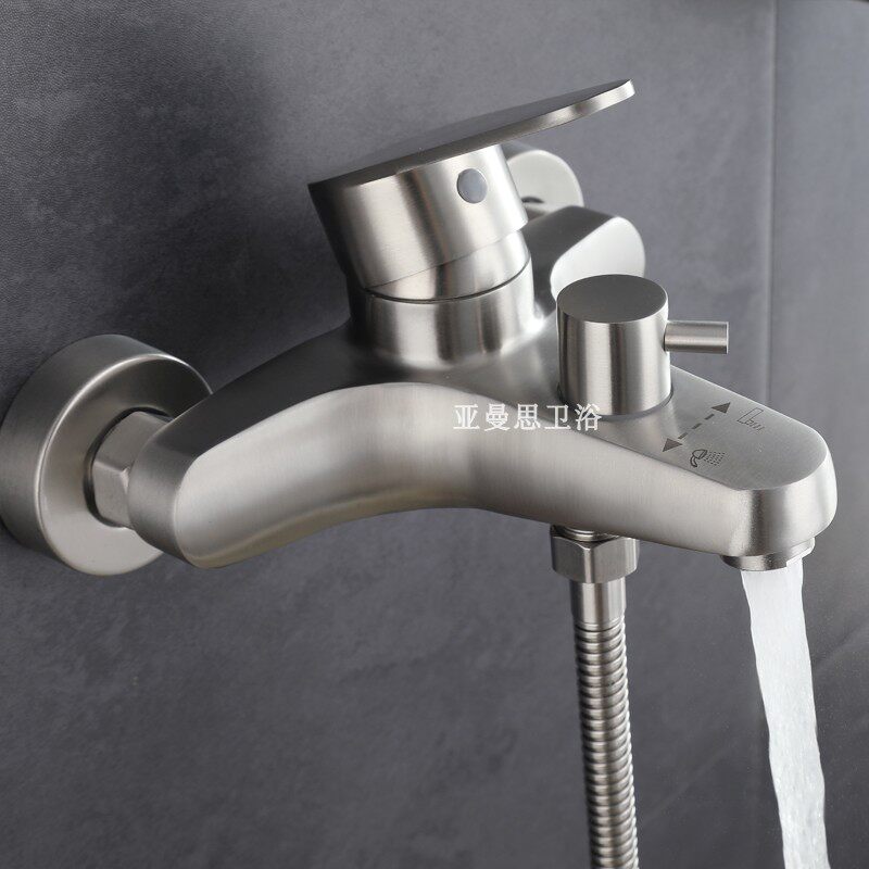 304 stainless steel shower tap bathroom switch triple cold and hot shower bath dark bath into wall mixed valve