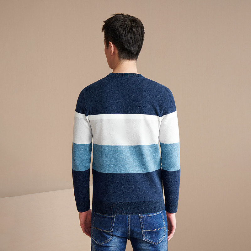 HLA Heilan House fashion contrast stripe long sleeve knit shirt casual comfort Chenier pullover men