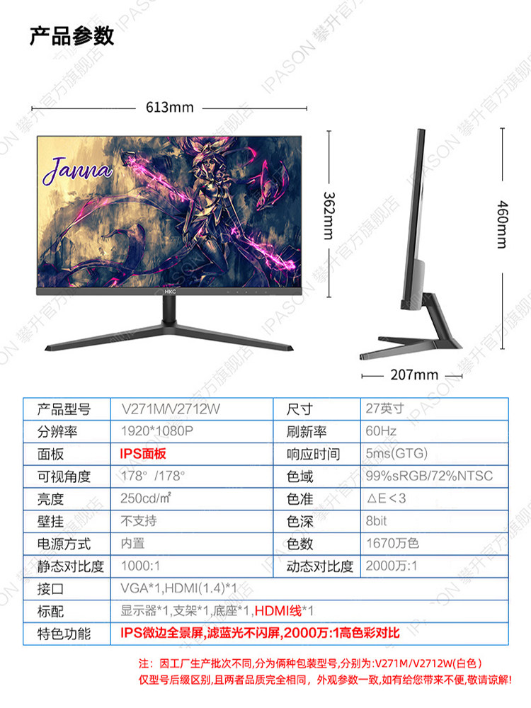 HKC V241M (24 inch IPS screen filter blue light screen without splashing screen) HKC V271M (IPS hard screen 178 ° panoramic wide viewing angle filter blue light screen without splashing screen) HKC V271M (27 inch filter blue light screen without splashing screen) + keyboard and mouse set HKC V2712W white (27 inch IPS screen filter blue light does not splash screen) HKC V2712W white (27 inch IPS screen filter blue light does not splash screen) + keyboard and mouse set