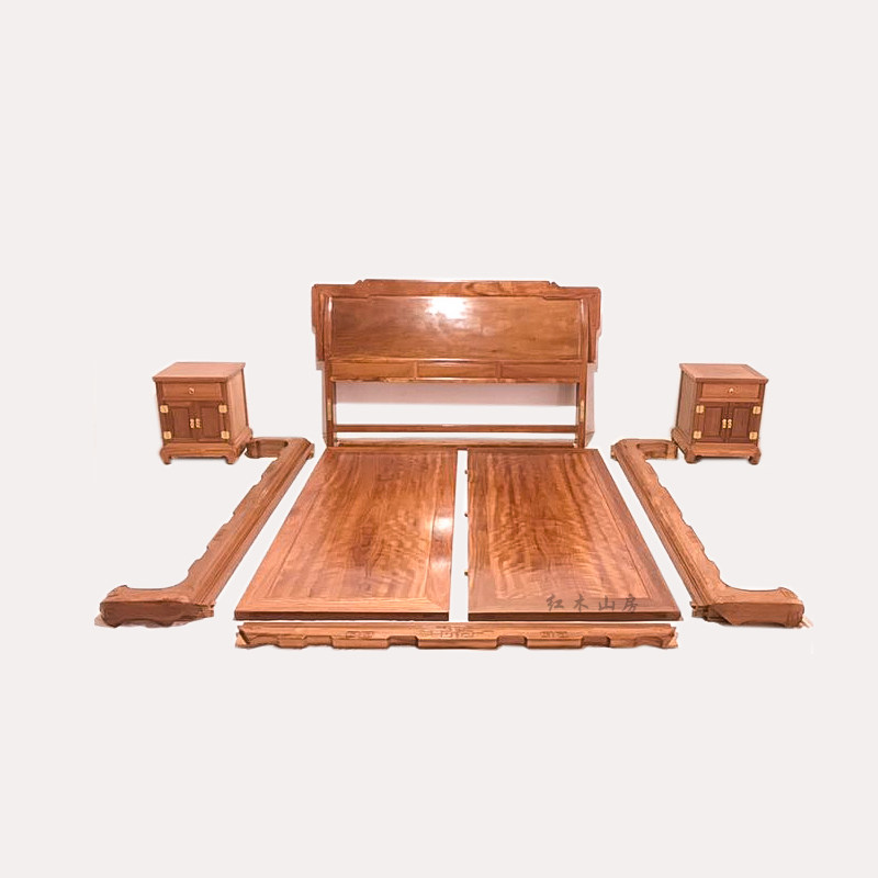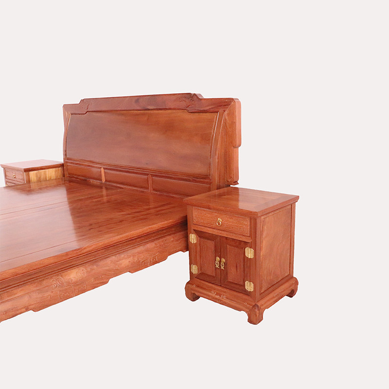 Iron pear wood new big bed three-piece set bedroom iron wood simple double bed modern new Chinese furniture all solid wood