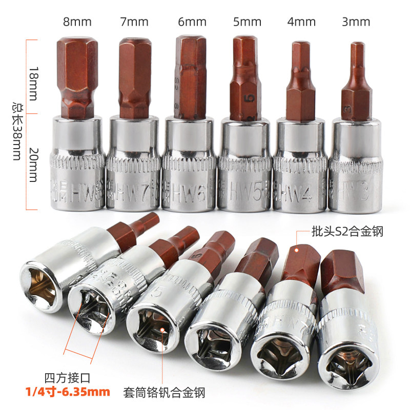 Inner hex socket 1 4 small fly sleeve batch t25t30t40 plum blossom inner six flowers one word cross screw sleeve
