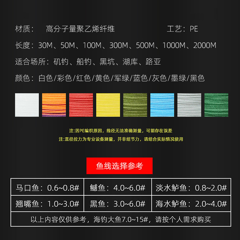 High power 16 woven black anchor torpedo Strong special road sub-PE line 12 woven vigorous horse fish line sea fishing over glue