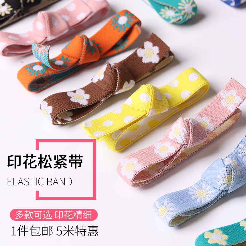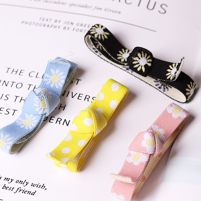 Pink 5-petal flower elastic band 5 m 1 part pink polo dot elastic band 5 m 1 part pink sunflower elastic band 5 m 1 part black 5 petals elastic band 5 m 1 part black sunflower elastic band 5