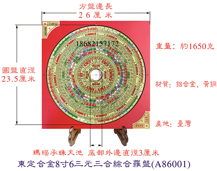 Red front Taiwan Dongding compass original aluminum alloy 8 inch 6 triple synthesis