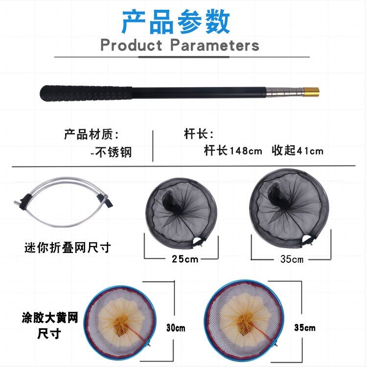 Mini short-section copy net pole ultra-short telescopic ultra-hard thickened net copy pole convenient for fishing big fish and small fish ultra-light and super hard
